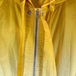 Drawstring hood; full-zip front closure with snap-button storm placket