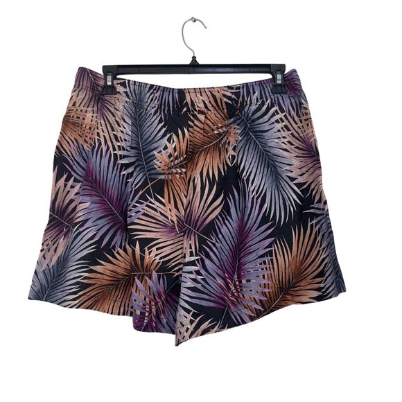 Royalty By Maluma Women SZ XL Palm Leaf Print Pull On Shorts Linen Blend Summer