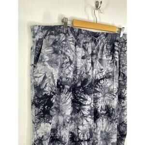 Royalty Collection Blue Tie Dye Linen Blend Raw Hem Pants Women's Plus Size 3X