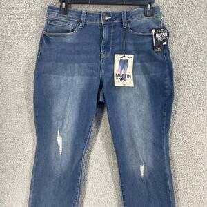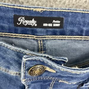 Royalty For Me Jeans Womens 14P x26 Blue Ankle High-Rise Skinny Petite Rip Tear