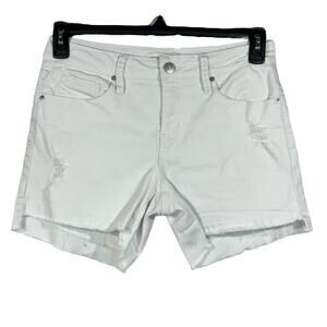 Royalty For Me SZ 4 Jean Shorts Mid-Rise Distressed Stretch Frayed Hems White