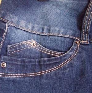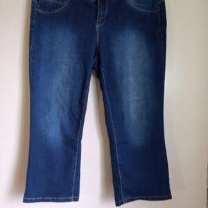 Dark wash Cropped jeans by Royalty for me wannalottabut in women's size 12. Butt enhancing jeans with stretch. Great pre-owned condition with no flaws noted.