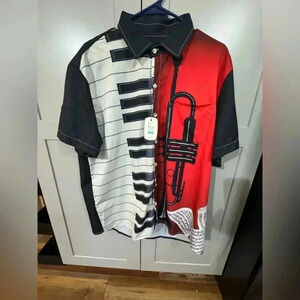 Royaura Men's Nostalgic Music Shirt Short Sleeve Shirt- L NWT