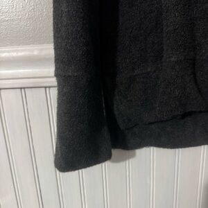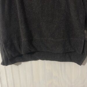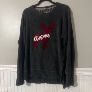 Cute Christmas sweater with embroidered “Christmas” and a reindeer on it. Color is charcoal, dark red and white. Medium weight.