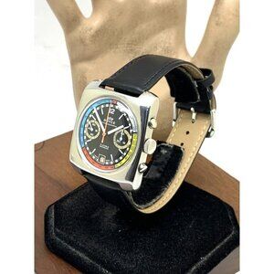 Royce Men's Watch Vintage 1970s Swiss Manual Wind Chronograph Rainbow Bl…