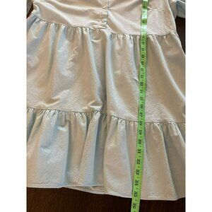 Tags-light blue dress, tiered shirt dress, puff sleeve dress, ruffle dress, button-up dress, casual dress, cotton blend dress, lightweight dress, summer dress, collared dress, Roylamp dress, women’s medium dress, blue ruffle dress