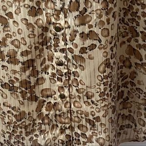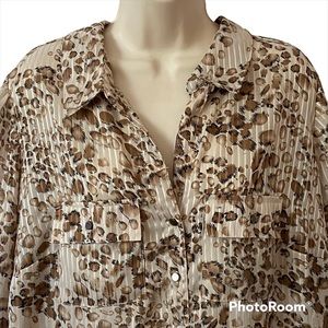 Roz Ali 1X Button Down Blouse Beige Brown Animal Print Long Sleeve Collared.