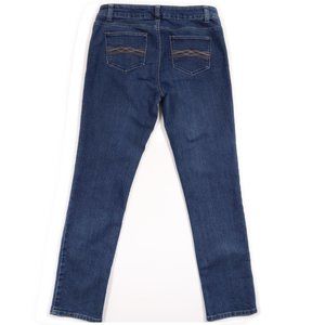 Roz & Ali 5 Pocket Straight leg Jeans Embroidered Pockets Blue Size 6 Average