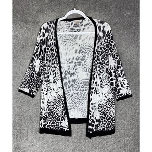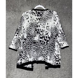 Roz & Ali Animal Print Open Front Cardigan Sweater Womens Size 2X Black White