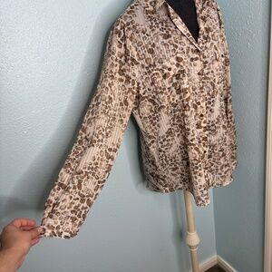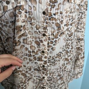 Roz & Ali Animal Print Sheer Button Down Blouse Shirt Top