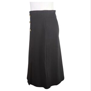 Roz & Ali Black A-Line Midi Skirt Gold Button Front Sailor Style Medium