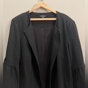 Roz & Ali Black Blazer Jacket Womens 1X Bell Sleeve Business Coat Work Party