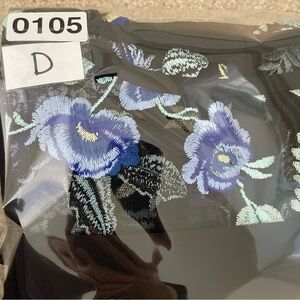 Beautiful dress with mesh at chest and sleeves with floral embroidery. Pictures do not do this justice.