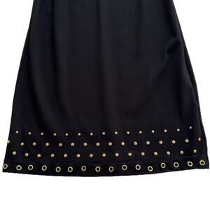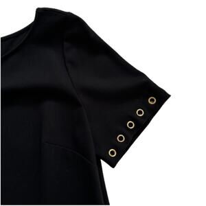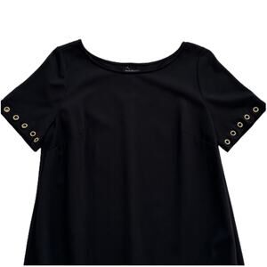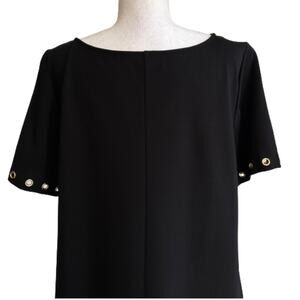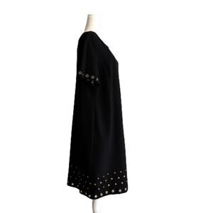 Roz & Ali Black Grommet Rivet Detail Short Sleeve Shift LBD Dress Woman Size 14
