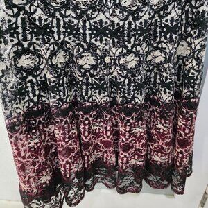 This Roz & Ali sleeveless dress in size 16 is a chic and versatile piece that’s perfect for special occasions, parties, or a polished office-to-evening look. Designed with a beautiful lace overlay in black and cream with a burgundy ombré hem, this dress offers an elegant and feminine touch. With minimal stretch, it holds its shape while giving a flattering silhouette.