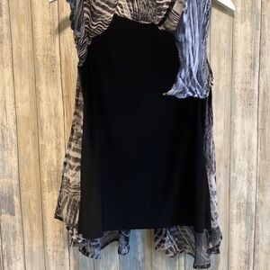 Roz & Ali Black & Silver Sleeveless Hi-Lo Blouse | Size medium