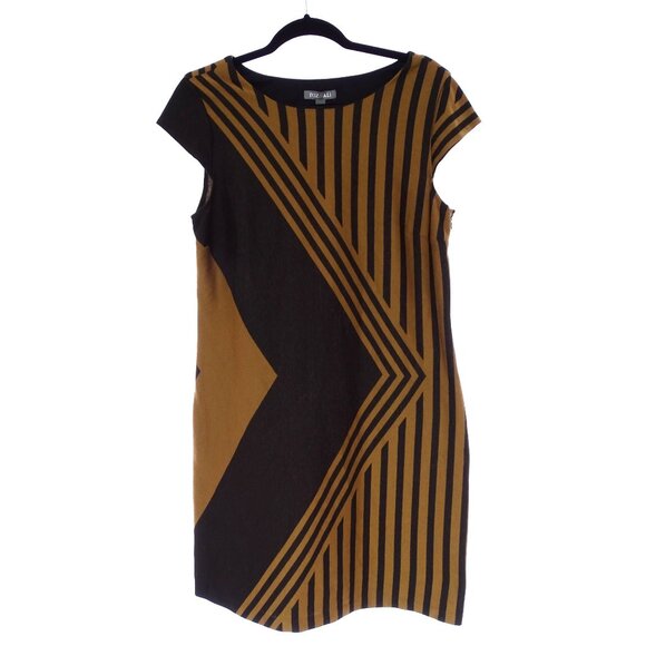 Roz & Ali Brown Black Geometric Print Soft Knit Shift Dress Size 12 Office