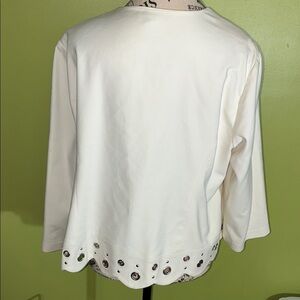 Chic cream jacket, with three quarter sleeve length,by Roz & Ali. Versatile and stylish. New without tags. Pit-to-pit 21” Sleeve 18” L 20”