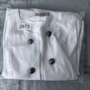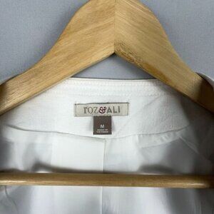 Roz & Ali Cropped Denim Suit Jacket Studded Open Front Womens M Collarless White