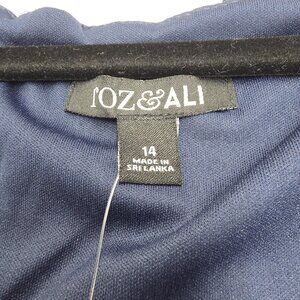 Roz & Ali Dress Womens 14 Navy Blue Lace Floral Sequin Sheath V Neck Cap Sleeve