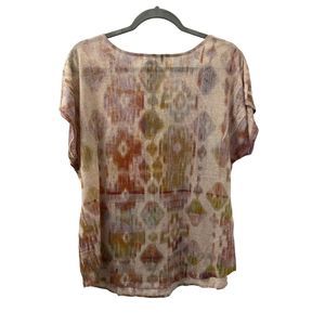 Roz & Ali Feather print V Neck Tee with sequins Size 1X