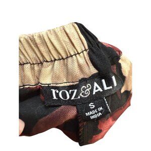Roz & Ali Floral Maxi Skirt S Elastic Waist Red & Cream Flowers Flowy Lightweigh