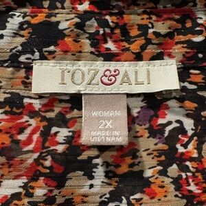Roz & Ali Floral Orange and Rex Button-Up Blouse - Size 2XL