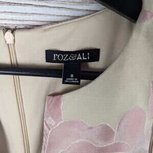 Roz & Ali Floral Rose Print Pink and Beige A Line Dress sz 8
