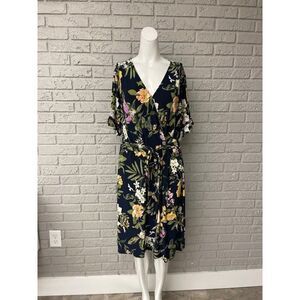 Roz & Ali Floral Surplice Neckline Dress Size 2XW