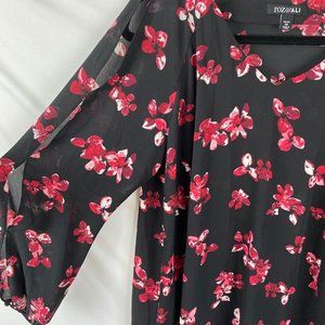 Roz & Ali Floral V-Neck Blouse w/Multi-Slit Chiffon Sleeves Size 2X Long chiffon sleeves have multiple slits down them Like new condition