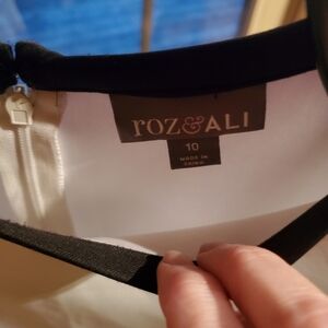 Roz & Ali Geometric White, Black & Gold Sheath Sleeveless Sz. 10 Dress