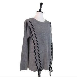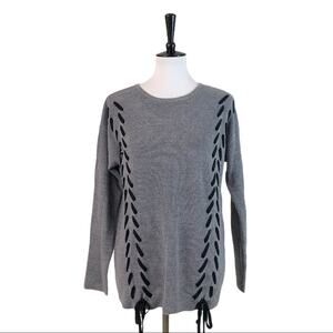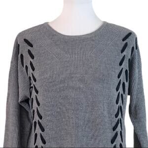 Roz & Ali Gray Black Ribbon Knit Knit Crew Neck Sweater Women's Size Medium