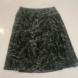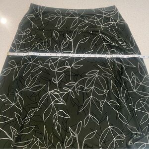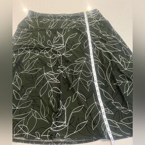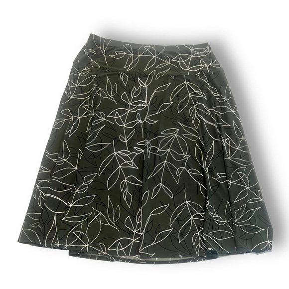 Roz & Ali Green with Black and White Leaf Pattern Flare Stretchy Skirt