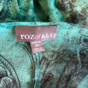 Roz & Ali Green/Brown embellished asymmetric tunic, size 3X