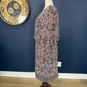 Roz & Ali Jersey Knit Black and Red Paisley Blouson Dress Plus Size 3X