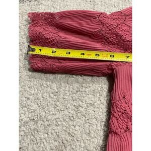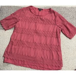 Roz & Ali Lace Overlay Blouse Women's Size Petite Large LP Short Sleeve Pink