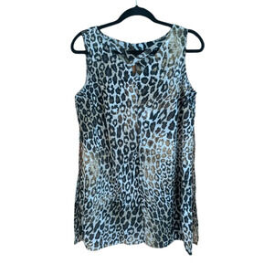 Roz & Ali Leopard Print Lined Flowy Layered Tunic Top Sleeveless Women's Small