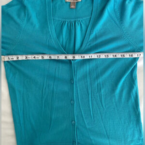 Roz & Ali Light Blue V-Neck 3/4 Sleeve Cardigan Sweater Size Small