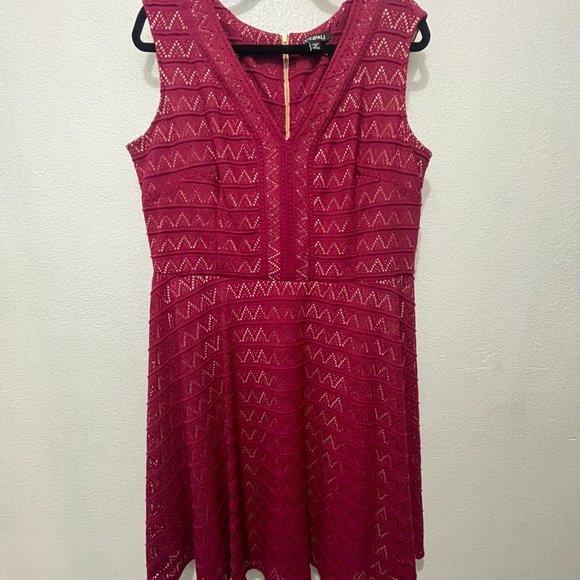 Roz & Ali Magenta Lace Nude Lined Dress SIze 14