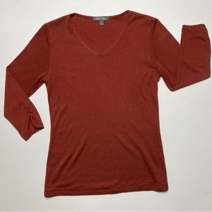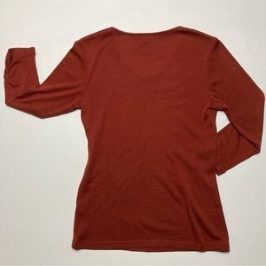 Burnt Sienna or Rust Colored Womens Medium Roz&Ali, Quarter Sleeve, V Neck, Ladies Shirt