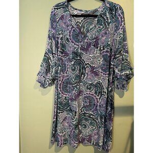 Roz & Ali Paisley Shift Plus SZ Dress 1X Boho Chic 3/4 Sleeve Flowy lightweight