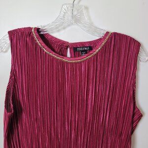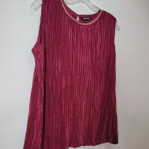 pleated top, women's top, petite large top, sleeveless blouse, chain detail top, berry pink blouse, polyester top, elegant top, casual wear, gold neckline top, pleated blouse, women's fashion, Roz & Ali