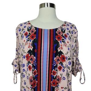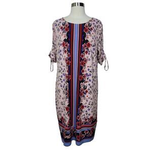 Roz & Ali Pink Floral Multicolor Short Sleeve Stretchy Dress Size XL Petite