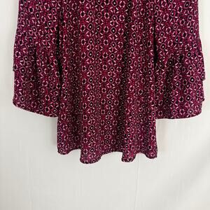 Roz & Ali Pink Patterned Blouse XS, Bell Sleeves, Lightweight Top Christmas