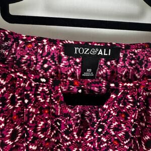 Add a pop of color to your wardrobe with this Roz & Ali pink patterned blouse. With stylish bell sleeves and a lightweight, breathable material, it's perfect for both casual and formal occasions. This top is in excellent condition and ready to wear for any season.