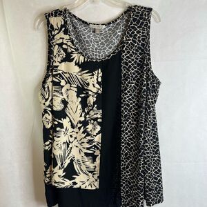 Roz & Ali Scoop Neck Draped Mixed Print Tank Top Plus Size 1X