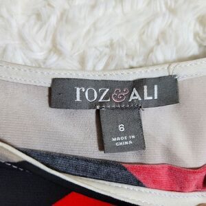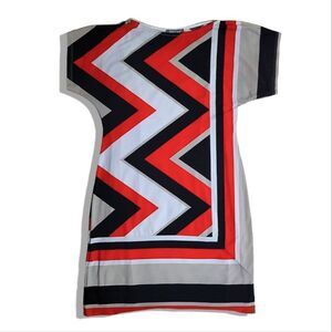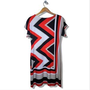 Roz & Ali Short Sleeve ZigZag Patterned Multicolor Red Black & Cream Dress;
