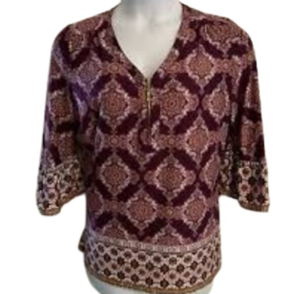 Roz & Ali Size 1X V-neck 3/4 sleeve With Bell Cuff Pullover Top