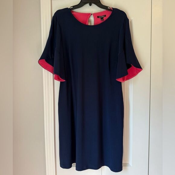 Roz & Ali Size L Elegant Navy Blue Dress with Pink Accents