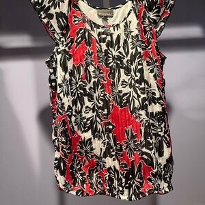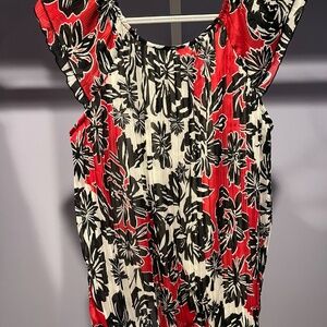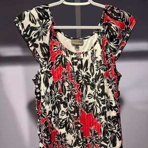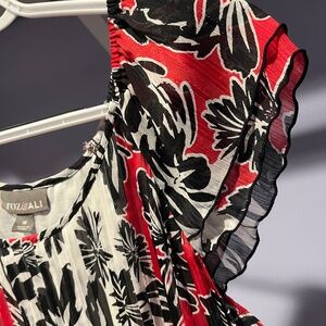 Elastic Hem and Shoulders; Flutter Sleeves; Red, Black, and White with Slight Silver Shimmery Thread